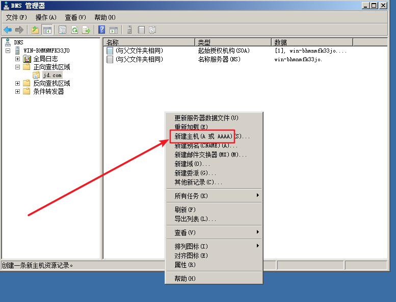 点击 刚刚新建的 jd.com 发现默认已经有2条数据。现在我添加一条记录。www这个域名的记录