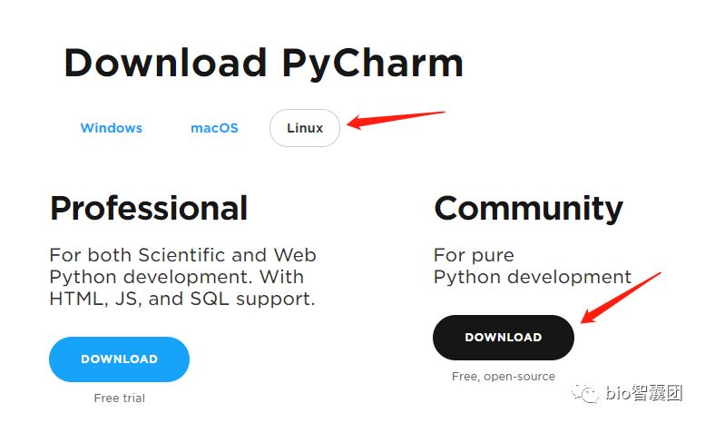 进入下载链接:https://www.jetbrains.com/pycharm/download/#section=linux