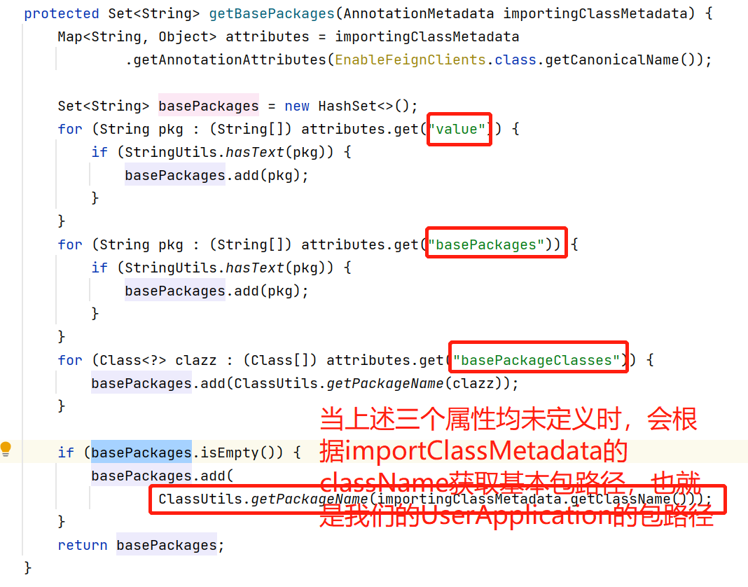 进入到 getBasePackages(metadata) 方法