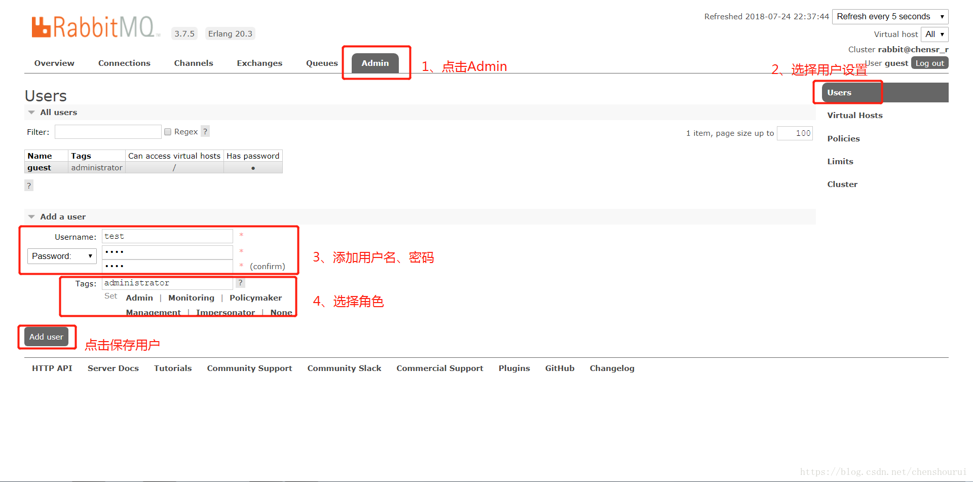 rabbitmq学习笔记2 : 添加用户和virtual hosts