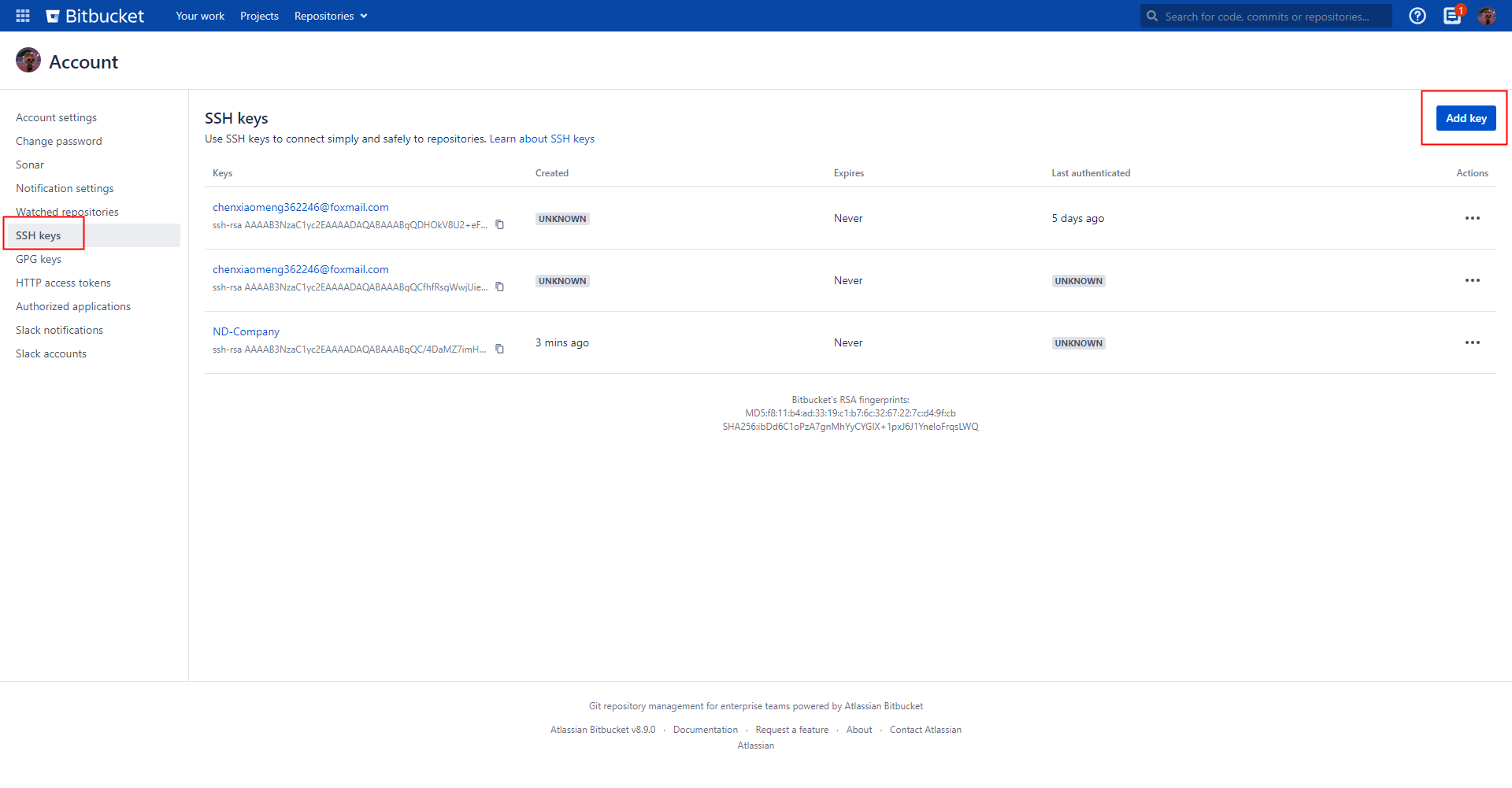这是bitbucket的添加key,点击右上方的头像,选择设置,然后