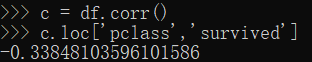 5.使用corr()函数,判断两个属性是否具有相关性,分析舱位的高低和存活率的关系
