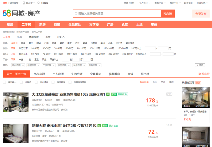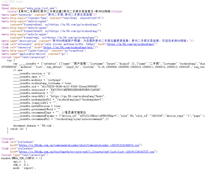 这次爬虫主要是爬取58同城泉州区域的房屋交易价格和房屋信息。