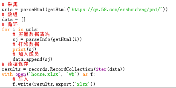 实现思路:获取58同城目标的HTML页面,使用requests爬取数据,BeautifulSoup解析页面,使用records进行数据存储、读取,最后打印出来数据