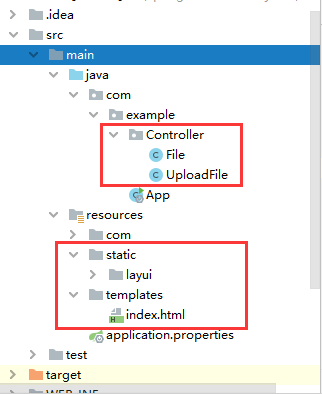 在idea中新建一个springboot工程,组件选择web和thymleaf就够了。新建好项目之后,将layui放在static文件夹下,然后在templates文件夹下创建一个index.html文件