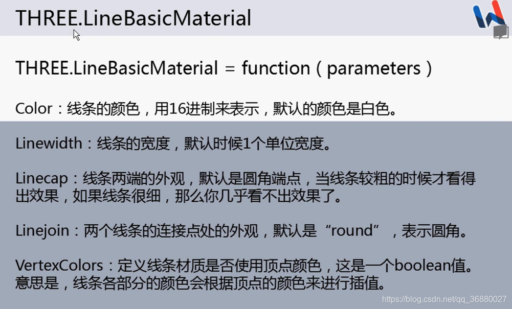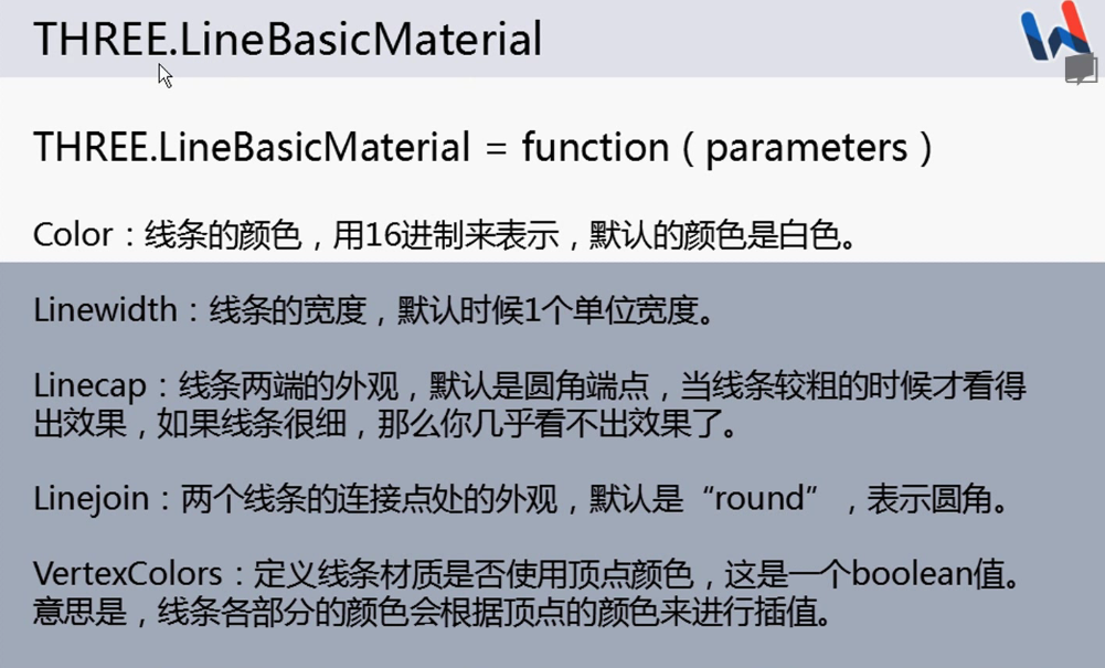 {vertexColors:false,color:0xff0000}可以使线条变成红色