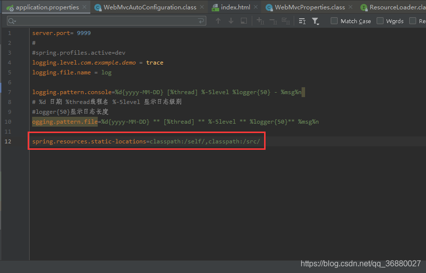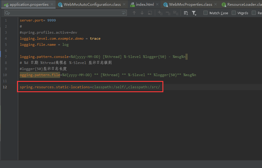 3.静态资源默认文件夹: classpath:/META-INF/resources/ 、classpath:/resources/ 、classpath:/static/ 、classpath:/public/ 。可以在properties文件中修改,修改方式依旧是prefix+属性名,如下