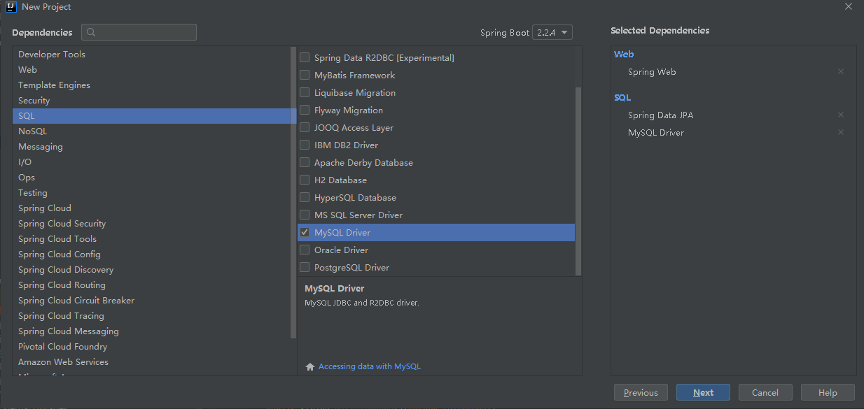 1.新建一个demo3工程,选择web、jpa、mysql,一路next,finish