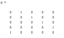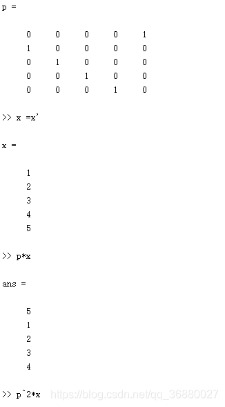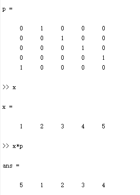 假设有一个矩阵 x = [1 2 3 4 5];那么矩阵 x 向右移1位得到 x = [5 1 2 3 4],这个移1位的过程可以用 x 与置换矩阵 p 相乘得到: