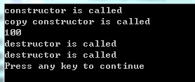 运行程序,屏幕输出100。从以上代码的运行结果可以看出,系统为对象 B 分配了内存并完成了与对象 A 的复制过程。就类对象而言,相同类型的类对象是通过拷贝构造函数来完成整个复制过程的。