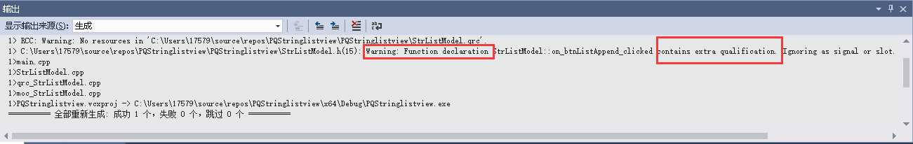 我定义槽函数的时候,在前面加了类名 testStrList,编译和运行时出现no such slot,并且给出的信息中有extra qualifications,意思是加入了额外的限定。