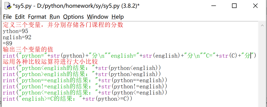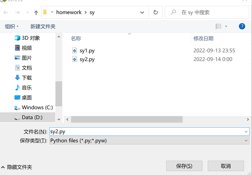 - 在IDLE中创建一个名称为sy2.py的文件(快捷键ctrl+s保存)