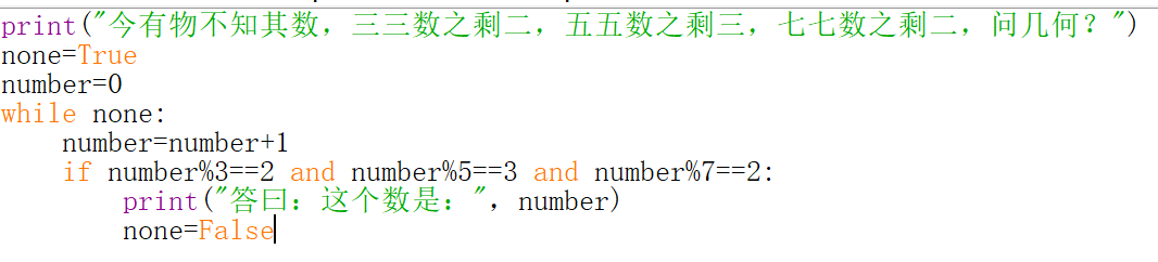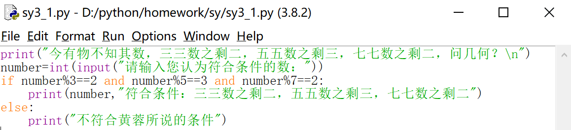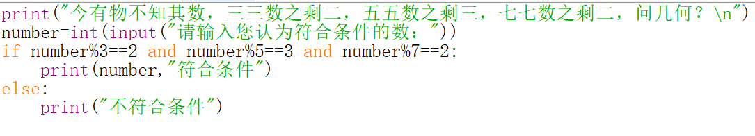一、实验目的与要求:使用if...else语句判断输入的数字是不是黄蓉所说的除以三余二,除以五余三,除以七余二的数,并给予相应的指示。