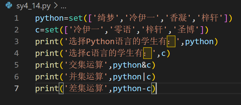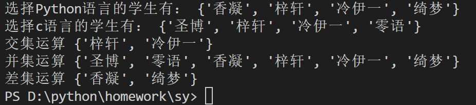 1.实验要求与目的:创建一个文件,然后在该文件中定义两个包括4个元素的集合,再根据需要对两个集合进行交集、并集和差集运算,并输出运算结果