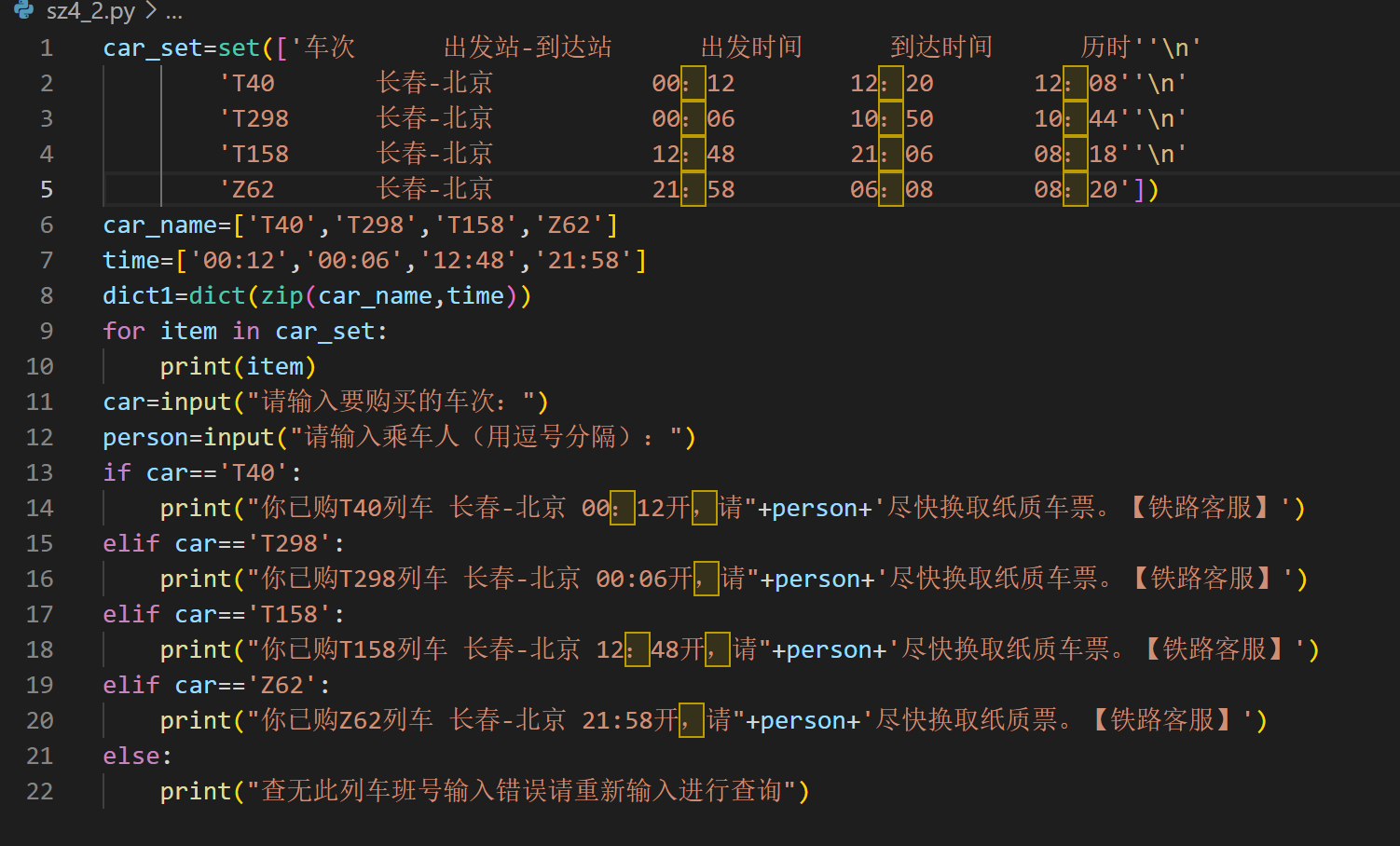 1.实验要求与目的:在实例二的基础上进行修改,将列表修改为元组,其他内容不变