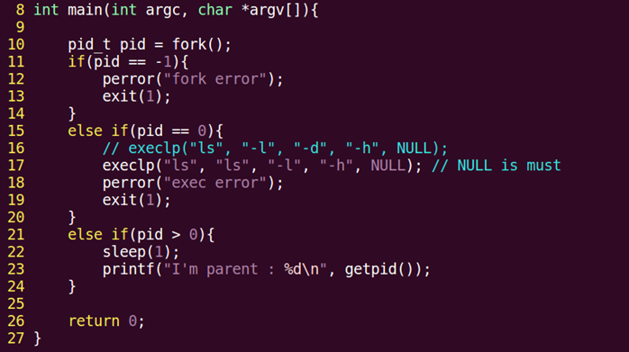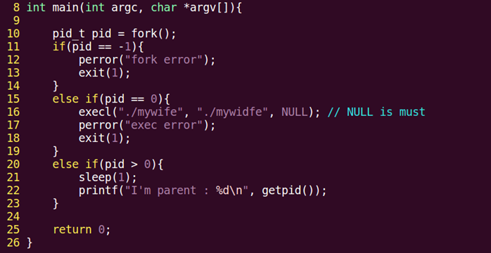 exec函数一旦调用成功,即执行新的程序,不返回。只有失败才返回,错误值-1,所以通常我们直接在exec函数调用后直接调用perror(),和exit(),无需if判断。