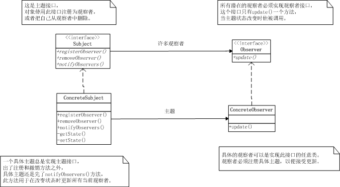 2、主题(即被观察者)用一个共同的接口来更新观察者;