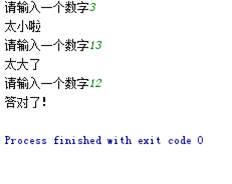 myNumber = 12 while True: guess = int(input('请输入一个数字')) if guess > myNumber : print('太大了') elif guess < myNumber: print('太小啦') else: print('答对了!') break