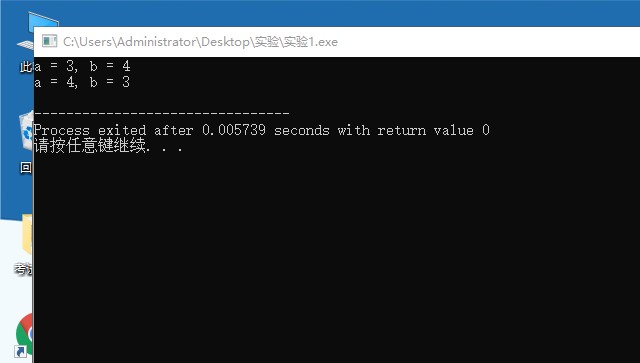 #include <stdio.h> int main() { int a, b, t; a = 3; b = 4; printf("a = %d, b = %d\n", a, b); t = a; a = b; b = t; printf("a = %d, b = %d\n", a, b); return 0;