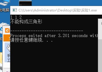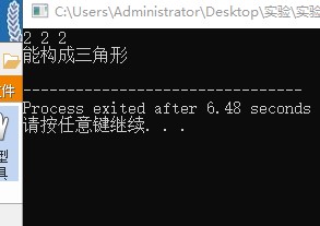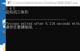 #include <stdio.h> int main() { float a, b, c; scanf("%f%f%f", &a, &b, &c); if(a+b>c and a-b<c) printf("能构成三角形\n"); else printf("不能构成三角形\n"); return 0; }