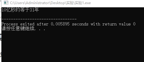 #include <stdio.h> int main() { int year; year= 1000000000/31536000; printf("10亿秒约等于%d年\n", year); return 0; }