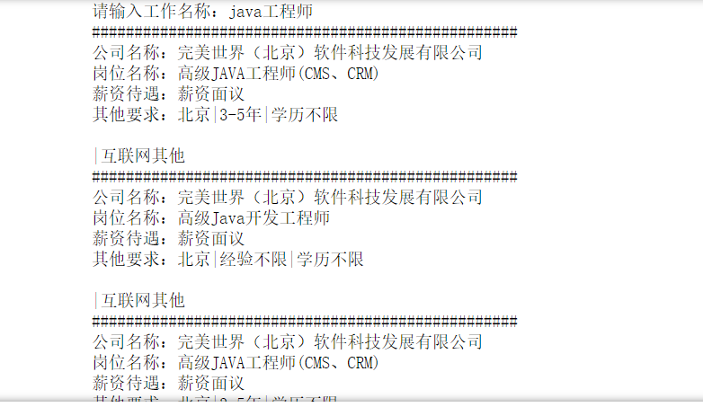 通过对中华英才网的岗位信息爬取发现,中华英才网的岗位信息太少,而且大多数信息没给出一个明确的薪资待遇水平,故若想找工作,不建议在这上面进行查找。