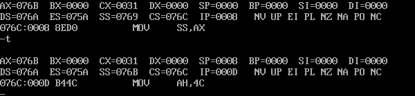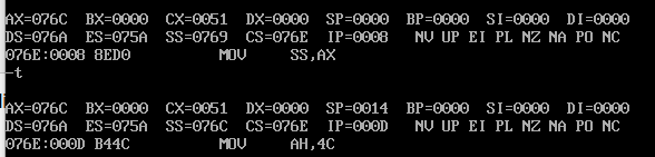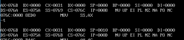 (1)寄存器(DS)= 076A,寄存器(SS)=076B,寄存器(CS)=076C