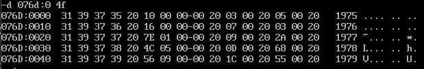 1 assume cs:code, ds:data, es:table 2 3 data segment 4 db '1975', '1976', '1977', '1978', '1979' 5 dw 16, 22, 382, 1356, 2390 6 dw 3, 7, 9, 13, 28 7 data ends 8 9 table segment 10 db 5 dup( 16 dup(' ') ) ; 11 table ends 12 13 code segment 14 start: 15 mov ax,data 16 mov ds,ax 17 mov ax,table 18 mov es,ax 19 mov bx,0 20 mov si,0 21 mov cx,5 22 s1: 23 mov ax,ds:[bx] 24 mov es:[si],ax 25 mov ax,ds:[bx+2] 26 mov es:[si+2],ax 27 add bx,4 28 add si,16 29 loop s1 30 31 mov bx,20 32 mov cx,5 33 mov si,5 34 s2: 35 mov ax,0 36 mov es:[si+2],ax 37 mov ax,ds:[bx] 38 mov es:[si],ax 39 add bx,2 40 add si,16 41 loop s2 42 43 mov bx,30 44 mov cx,5 45 mov si,10 46 s3: 47 mov ax,ds:[bx] 48 mov es:[si],ax 49 add bx,2 50 add si,16 51 loop s3 52 53 mov cx,5 54 mov si,0 55 s4: 56 mov ax,es:[si+5] 57 mov dx,es:[si+7] 58 div word ptr es:[si+10] 59 mov es:[si+13],ax 60 add si,16 61 loop s4 62 63 mov ah, 4ch 64 int 21h 65 code ends 66 end start
