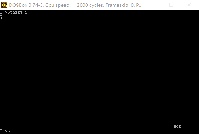 答:判断输入字符是否为7,当为7时在屏幕右下角输出yes,否则输出no