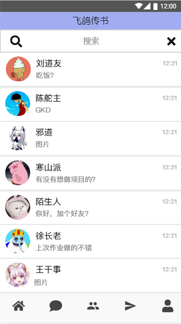 聊天记录界面,用于保存用户和其他好友的聊天窗口,方便用户进行聊天: