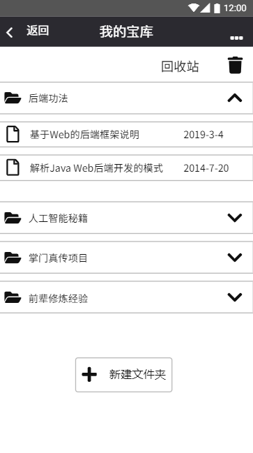 收藏夹界面,用户可以收藏自己感兴趣的文章、学习内容、开发项目等:
