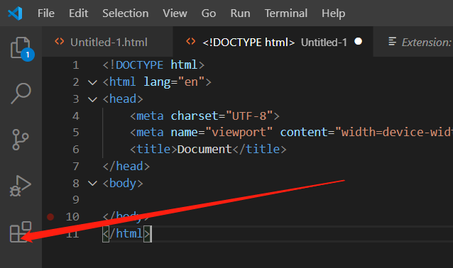 打开VSCode,选择插件安装按钮,点击
