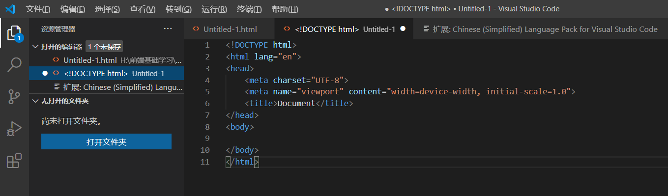 退出,再重新打开VSCode,这时候就会看到界面已经汉化了