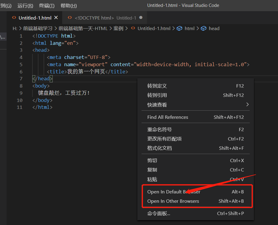 以Open in Browser为例,该功能是右击浏览器打开html文件