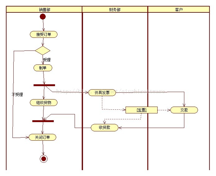 一张活动图可以有多个开始状态和结束状态,一个活动可以与多个实体对象相关(相关指的是一种访问操作),分支用在有多条路径可选的流程中,针对不同的路径进行不同的分支处理。