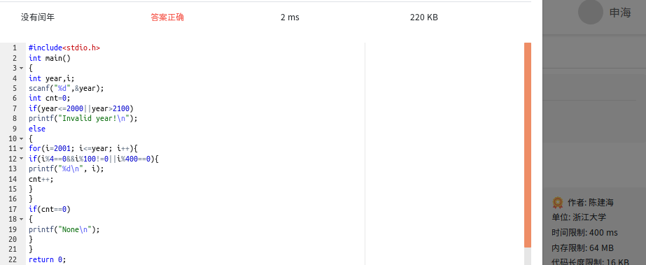 1.2输出21世纪中截止某个年份以来的所有闰年年份。注意:闰年的判别条件是该年年份能被4整除但不能被100整除、或者能被400整除. - 1.2.1数据处理.