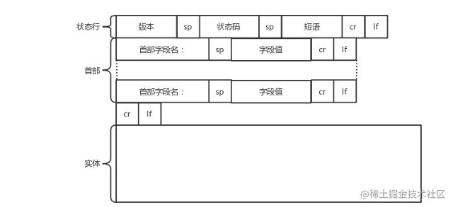 HTTP response协议的组成也分为三个部分:状态行、首部、响应体