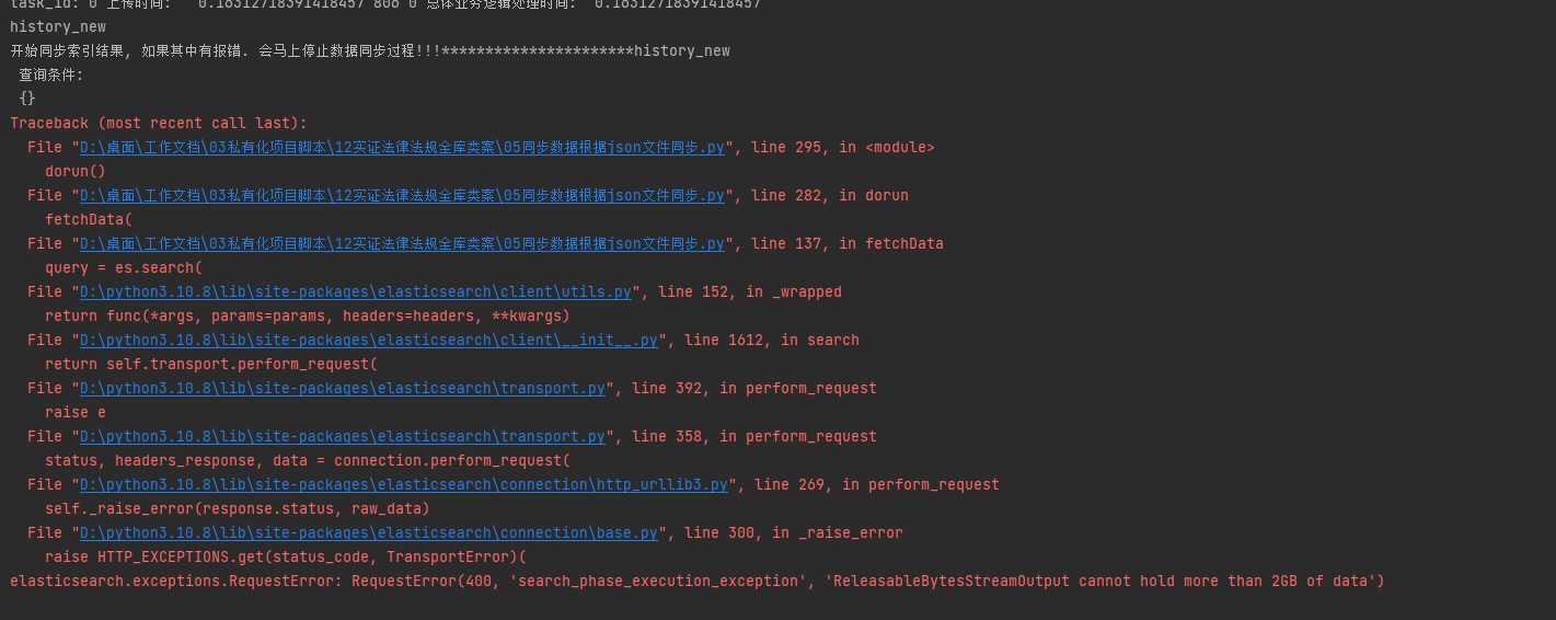 RequestError(400, 'search_phase_execution_exception', 'ReleasableBytesStreamOutput cannot hold more than 2GB of data')