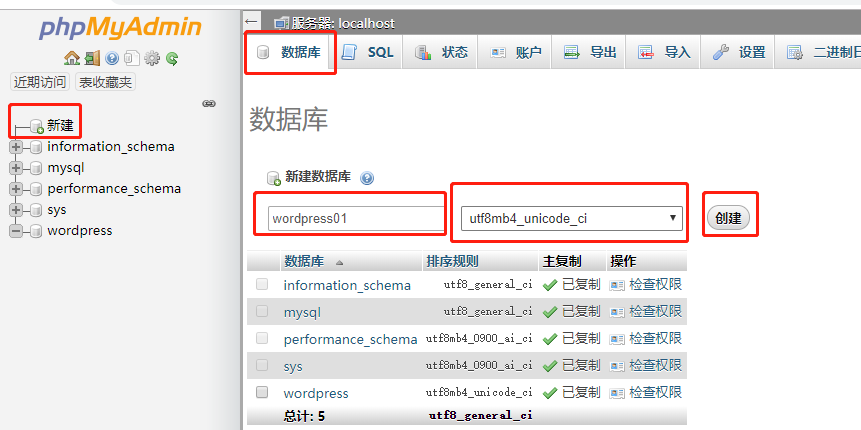 5.4 在浏览器输入localhost/phpMyAdmin4.8.5/index.php 用户名:root 密码:root 登录后如图