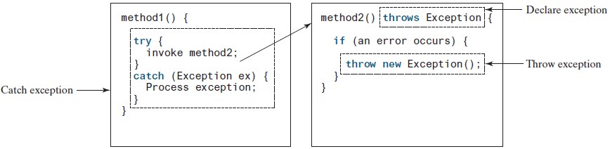 Java的异常处理模型基于三种操作:声明一个异常、抛出一个异常和捕获一个异常: