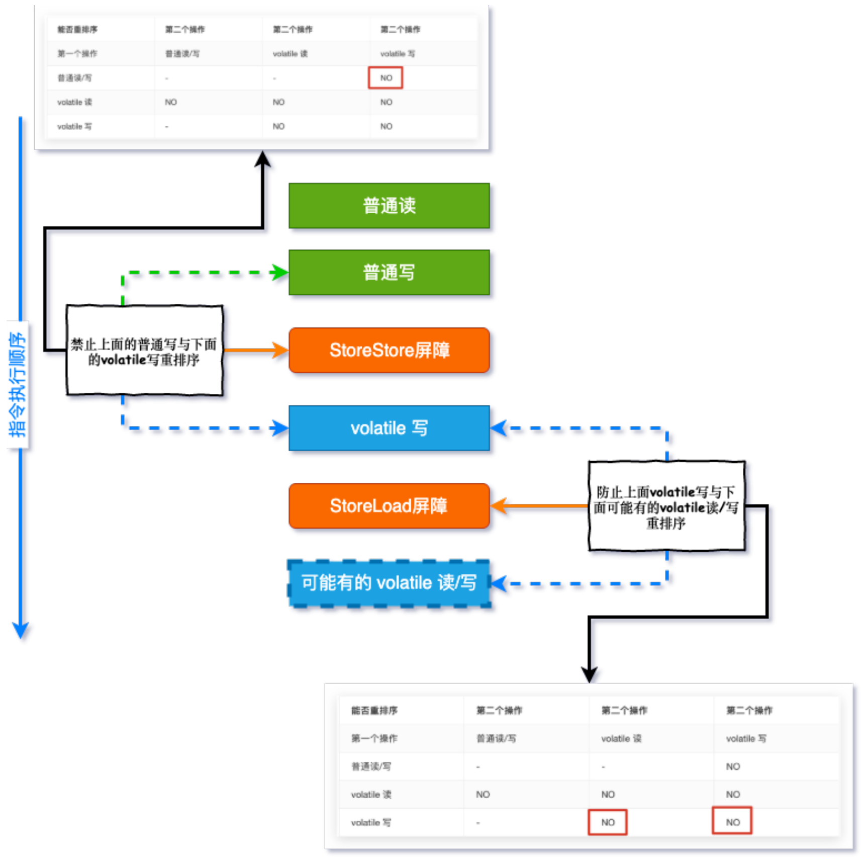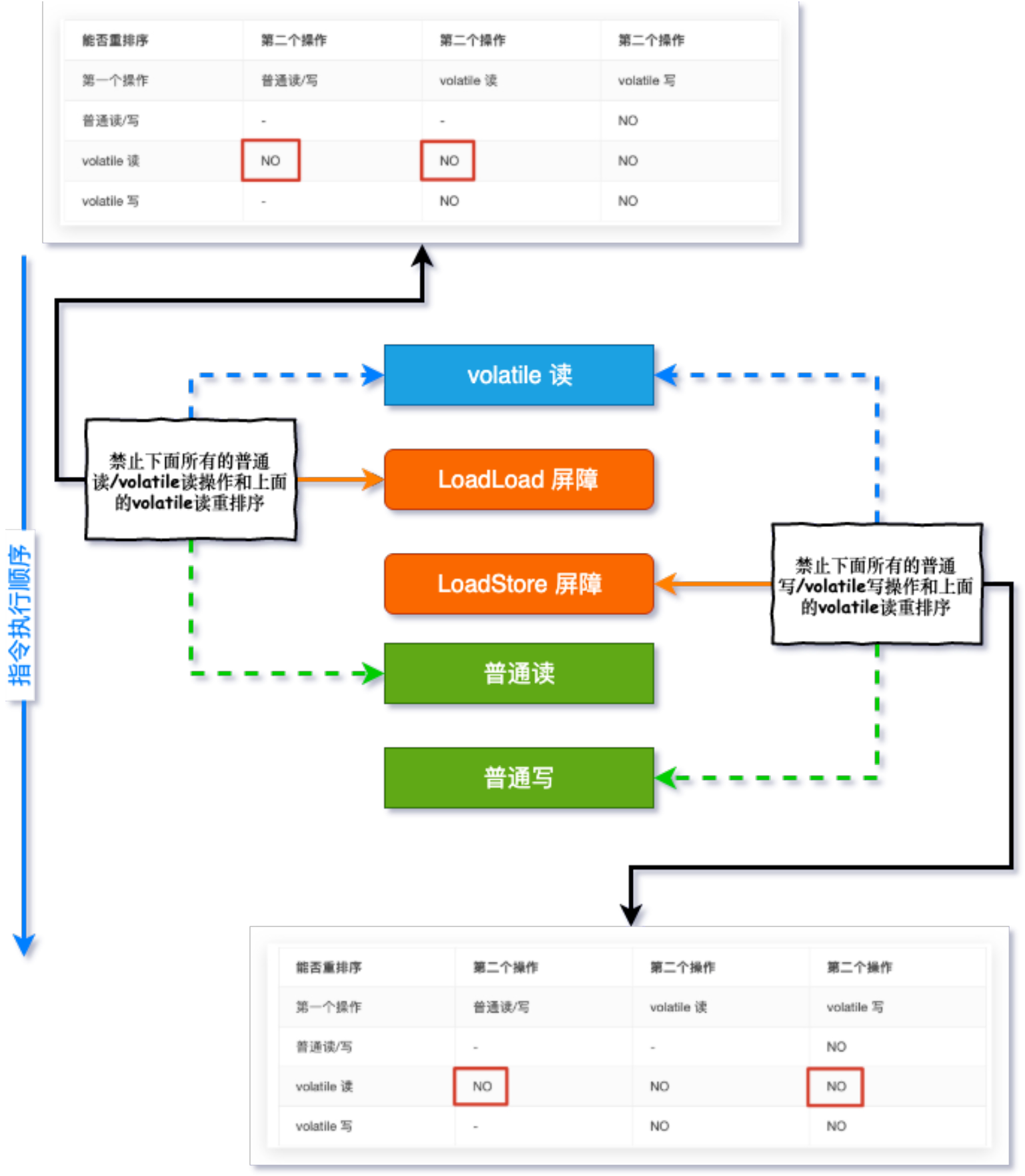 | 操作 | 普通读/写 | volatile读 | volatile写 | |