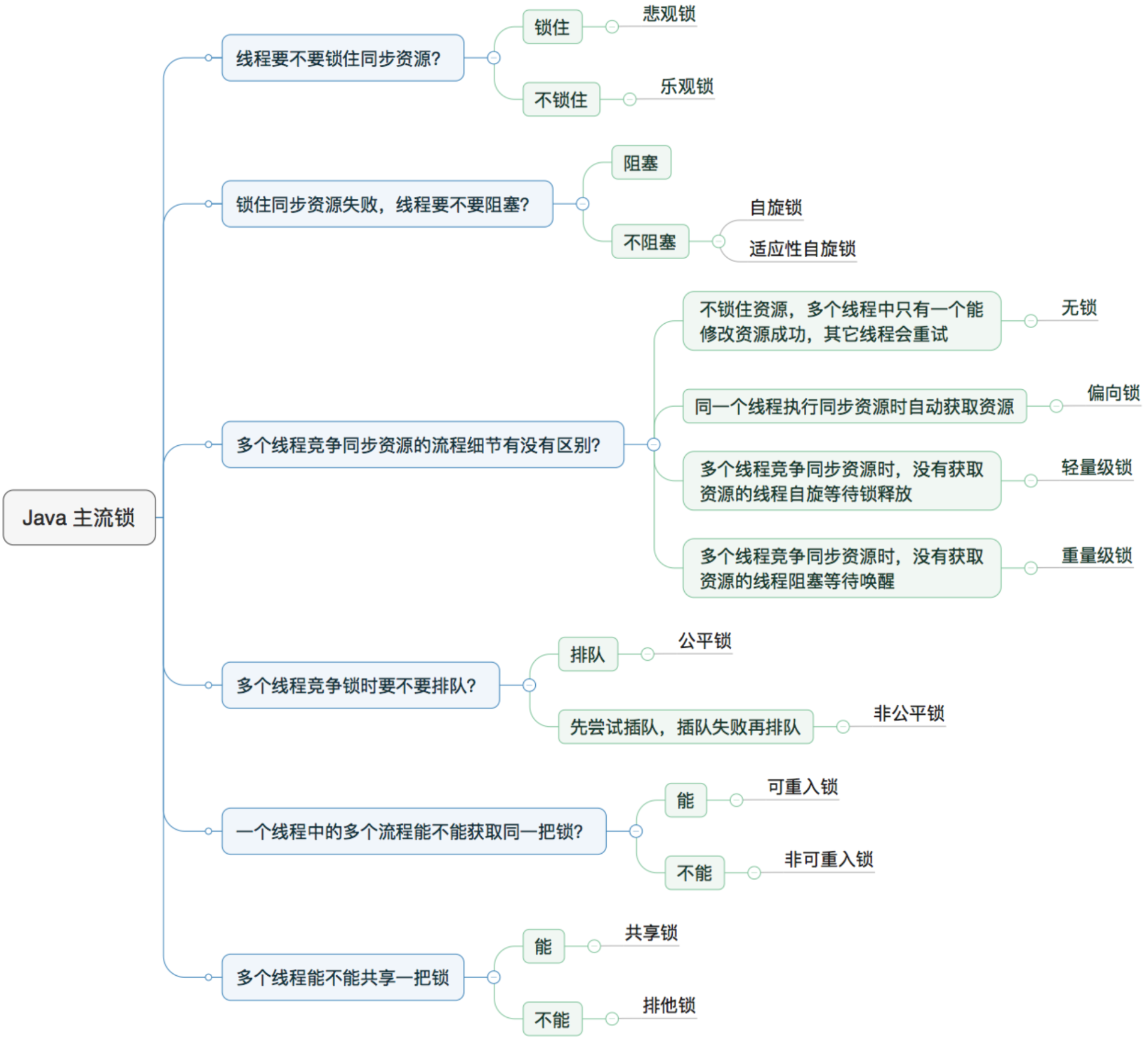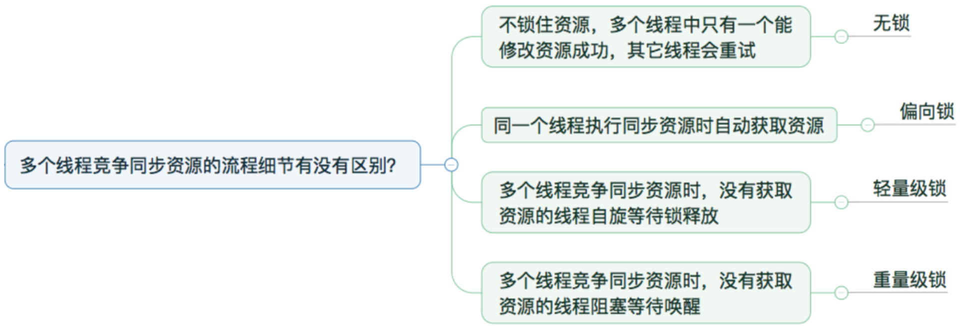 CAS操作和自旋来解决加锁问题,避免线程阻塞和唤醒而影响性能。 - 重量级锁是将除了拥有锁的线程以外的线程都阻塞。