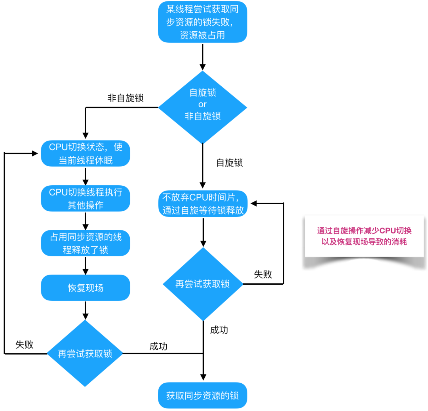 通过自旋操作,减少CPU切换以及恢复现场导致的消耗!