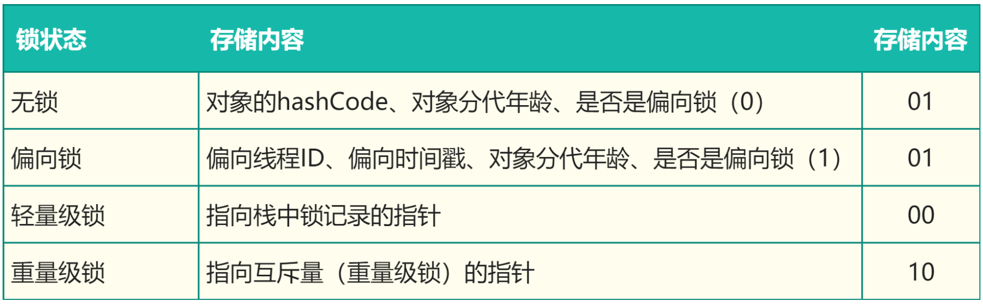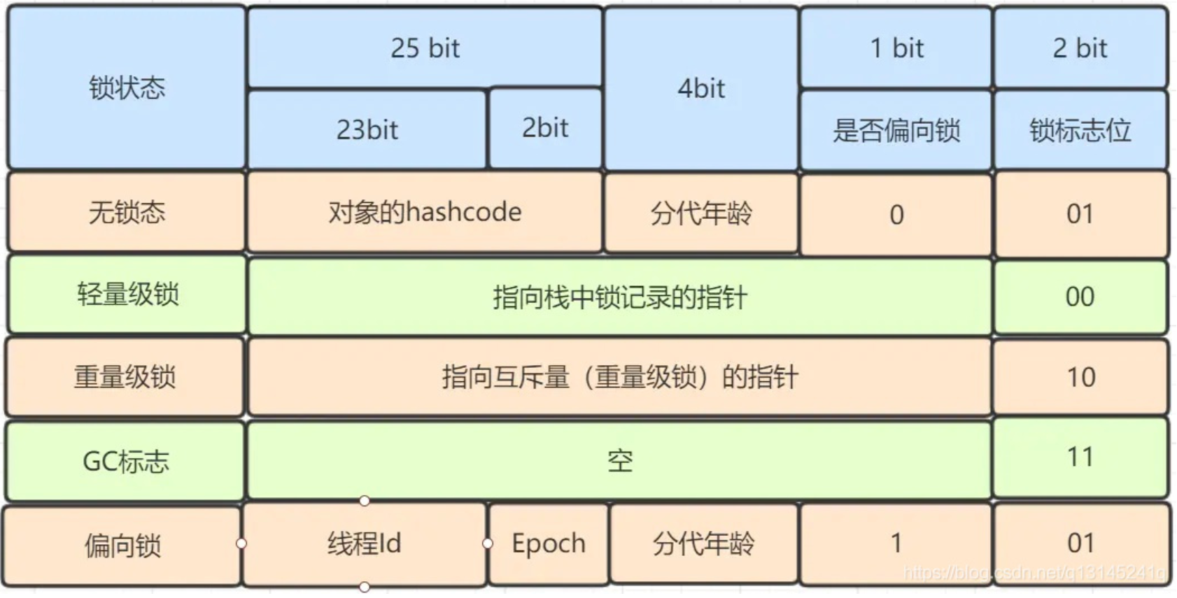 四种锁状态对应的的Mark Word内容: