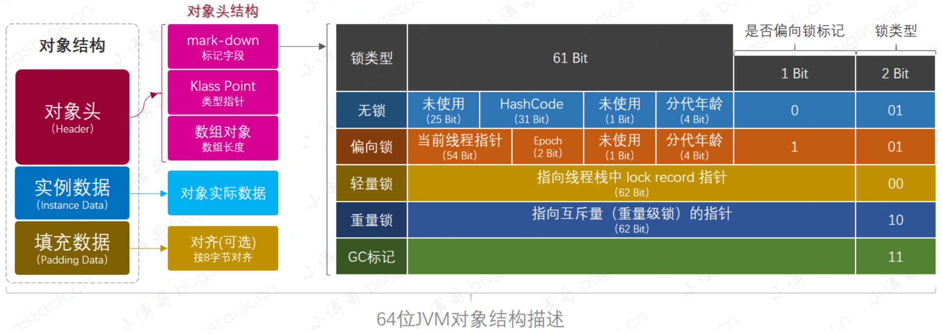 32位及64位对象头中的markword布局: