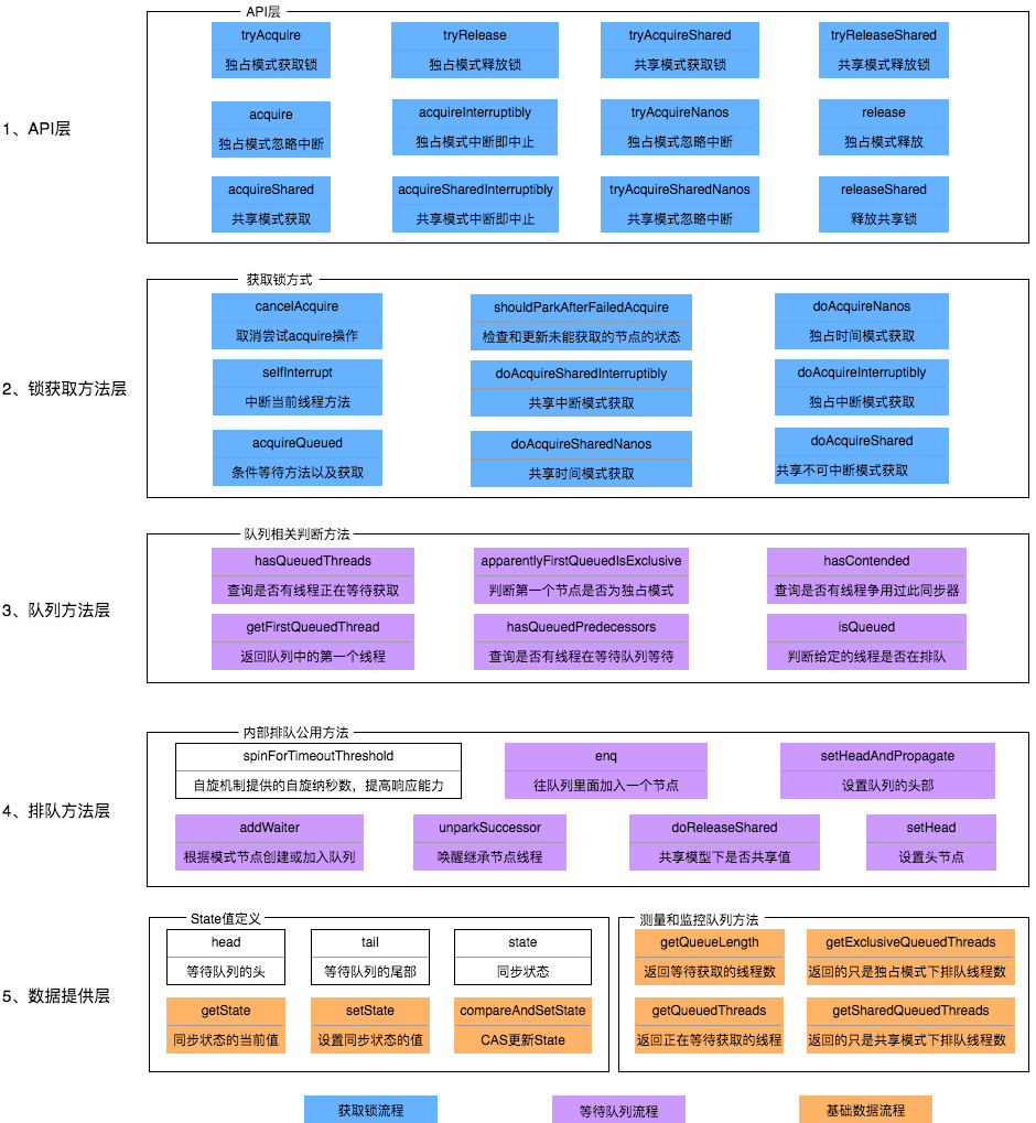 对于自定义的同步工具,需要自定义获取同步状态和释放状态的方式,也就是AQS架构图中的第一层:API层。