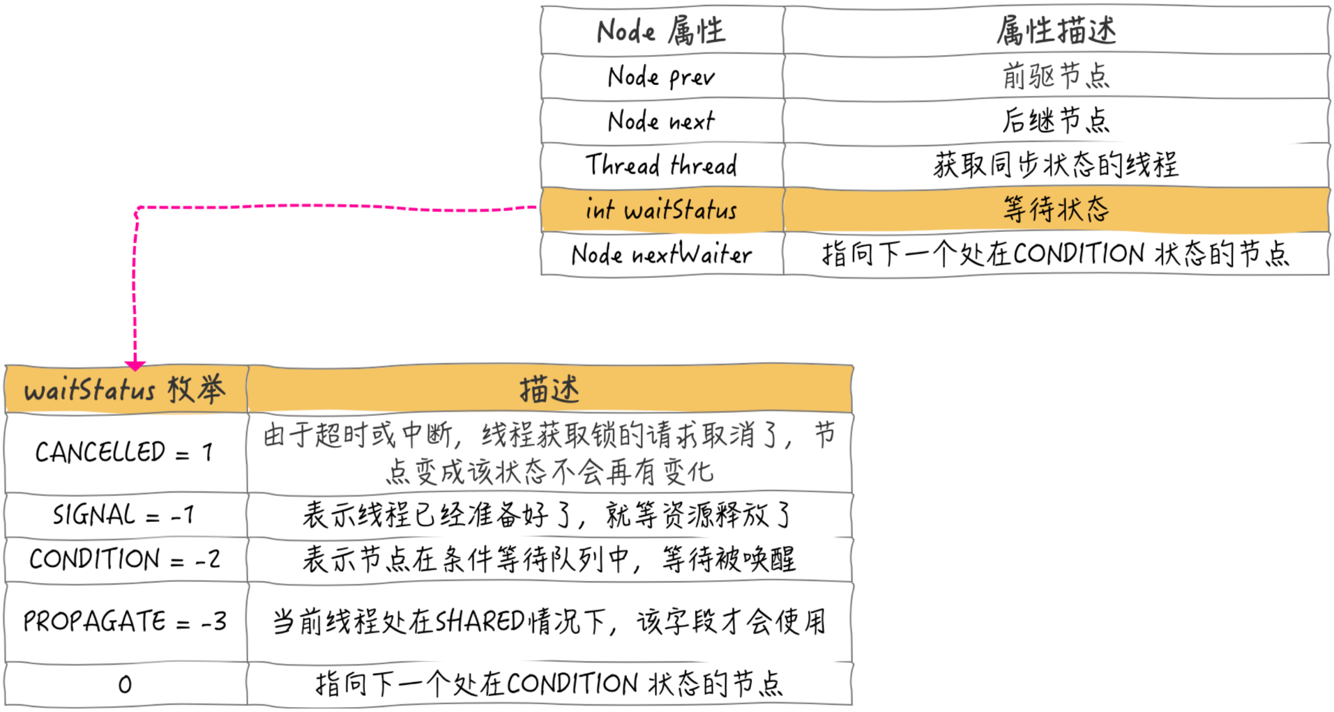 - 原因二:在产生CANCELLED状态节点的时候,先断开的是Next指针,Prev指针并未断开,因此也是必须要从后往前遍历才能够遍历完全部的Node。