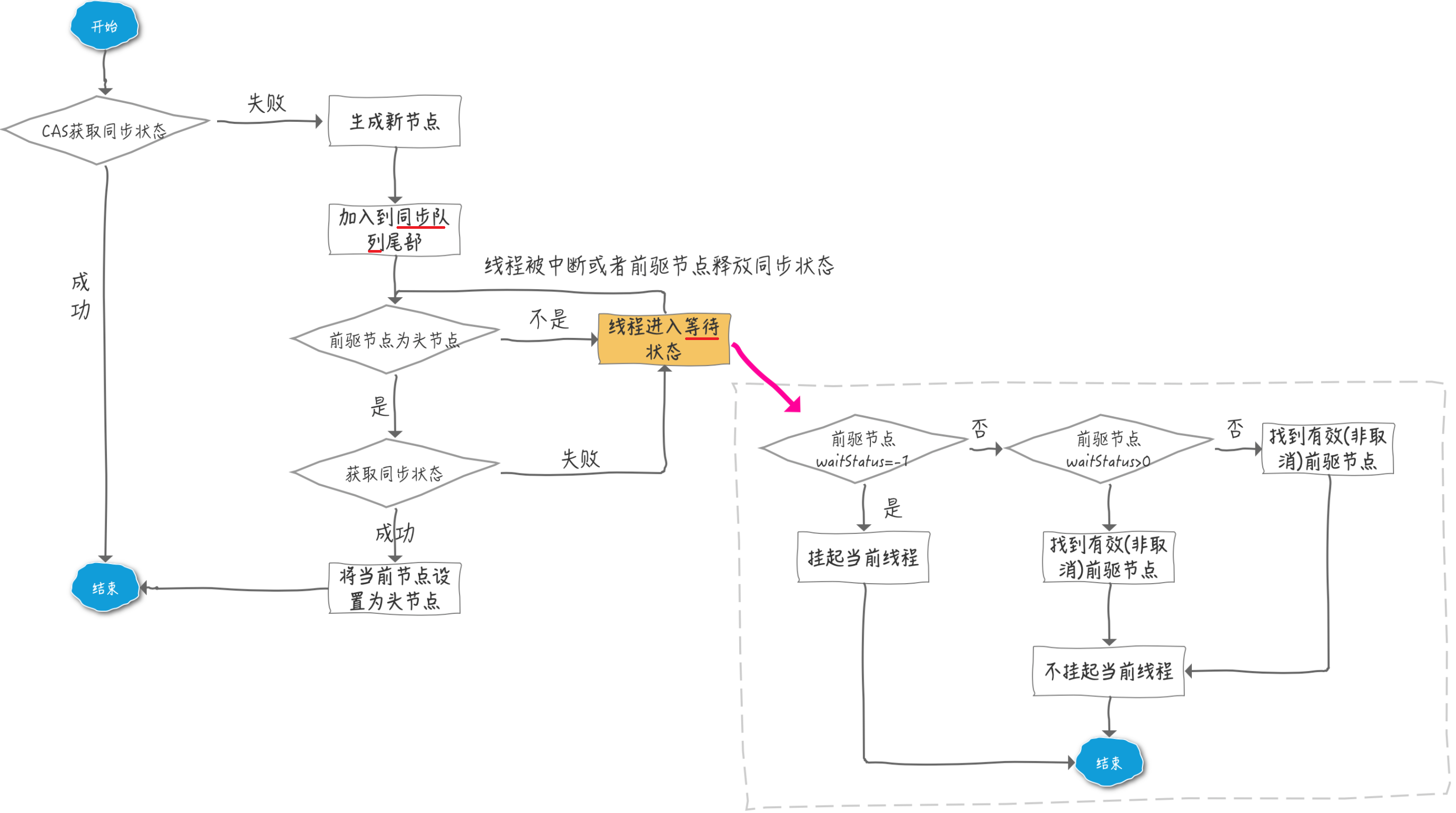 这里为什么还需要循环呢?因为当前线程节点的前驱状态可能不是SIGNAL,那么在当前这一轮循环中线程不会被挂起,然后更新超时时间,开始新一轮的尝试。