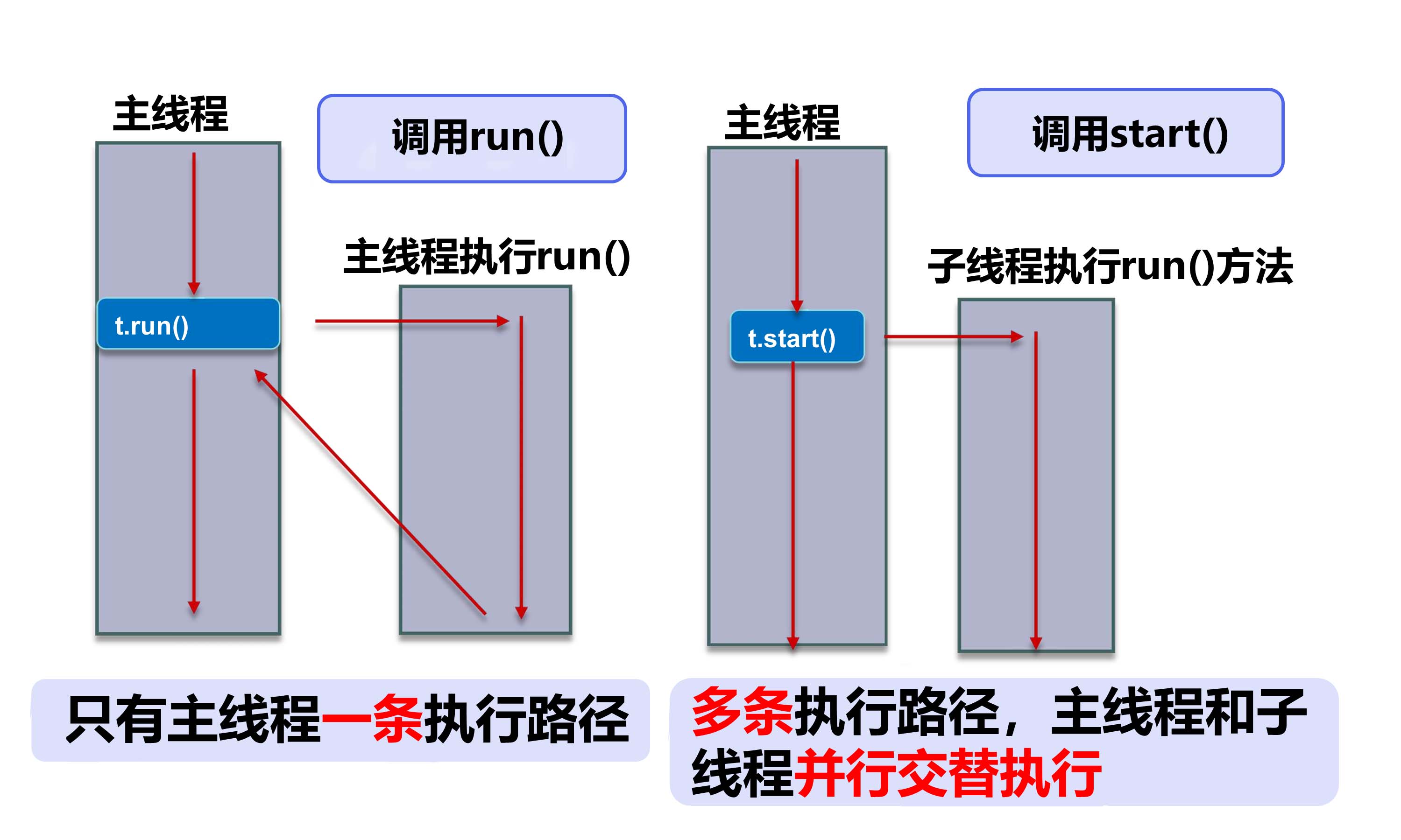 - main() 称之为主线程,为系统的入口,用于执行整个程序